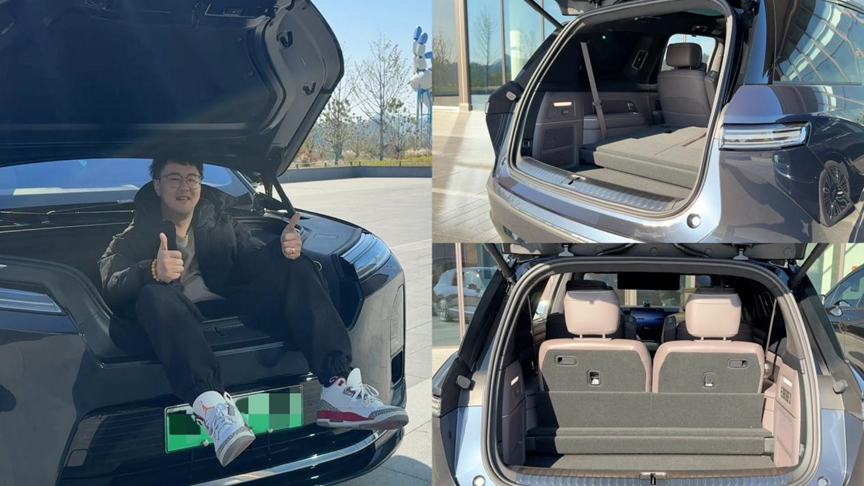一方面,蔚来ES8自带230L前备箱和547L后备箱,特别是这套前备箱,不仅容量够大,而且开口宽度和深度都很不错,我整个人都能直接坐进去。