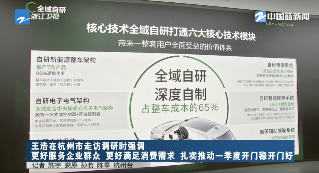 春节将至,不少行业企业仍处于生产作业高峰期。王浩调研的其中一站,是浙江零跑科技股份有限公司。