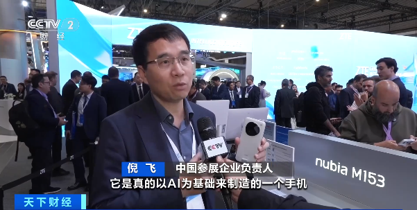 中国参展企业负责人 倪飞:它是以AI为基础制造的手机,整个AI代理和操作系统深度整合。最大的变化是交互方式,可以理解为,你的手机未来可以自动驾驶。它可以把应用程序当成一种能力,通过自然语言告诉它想做的事,它都可以一步实现。