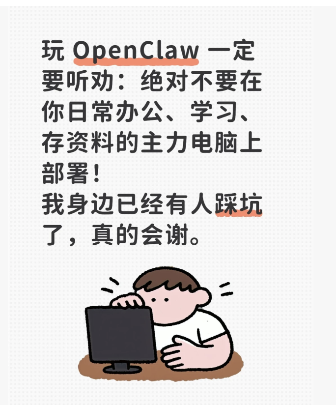 绝对不要在办公、学习或存资料的主力电脑上部署 OpenClaw。