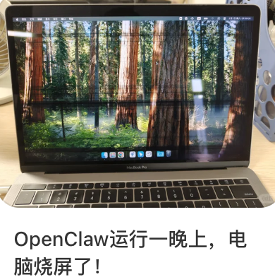 甚至有网友在自己的旧MacBook上部署OpenClaw以后,让它去装一个skills,结果安装失败,第二天打开一看,机器滚烫,屏幕烧了。
