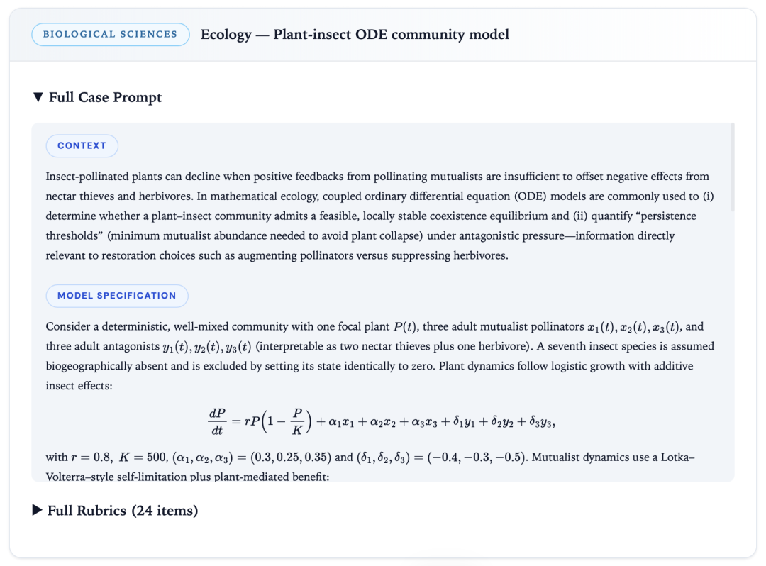 数据集中包含了具备真实科研质感的研究问题。下图展示的是一道生态学方向的示例,完整案例库可在 https://unipat.ai/blog/UniScientist 查阅。