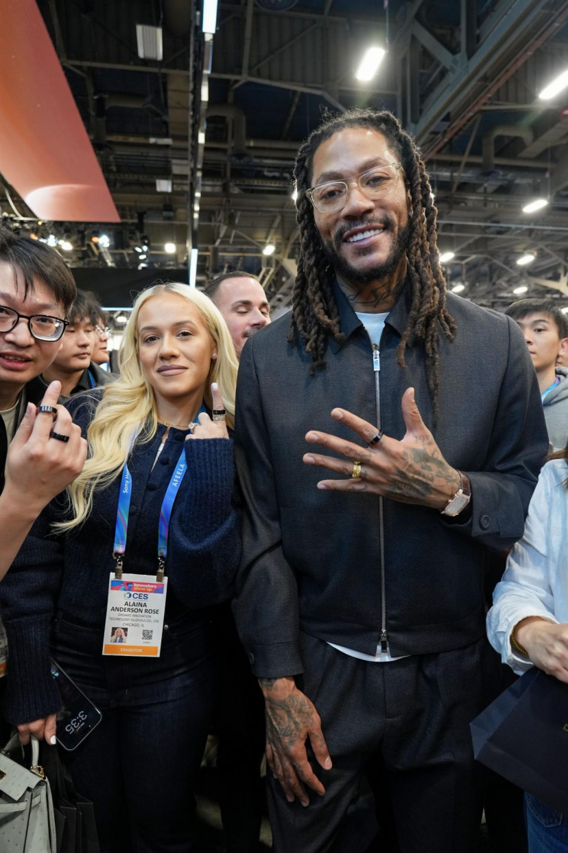 2026 CES国际消费电子展,NBA巨星德里克·罗斯与原子埃尔的AI智能戒指同框互动