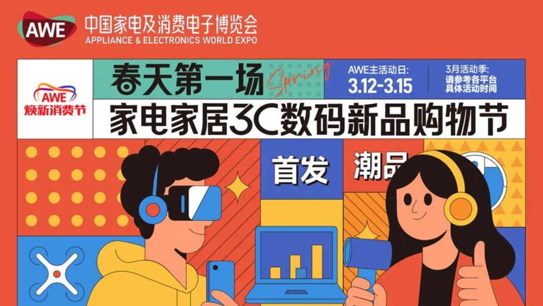 打破传统展会“只展不销”的橱窗效应,AWE2026以“全民参与、全民共享”为导向,打造集体验、互动、消费于一体的科技狂欢节,推动科技消费从“被动接受”转向“主动选择”。组委会联动京东、天猫、抖音、苏宁易购等主流电商平台,推出“AWE焕新消费节”,以专属补贴、优惠福利精准对接消费需求,打通“展会体验-线上线下消费”闭环。