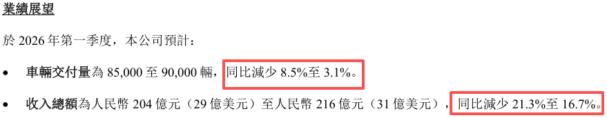其预计今年一季度交付量还会继续下滑,同比减少至多8.5%。