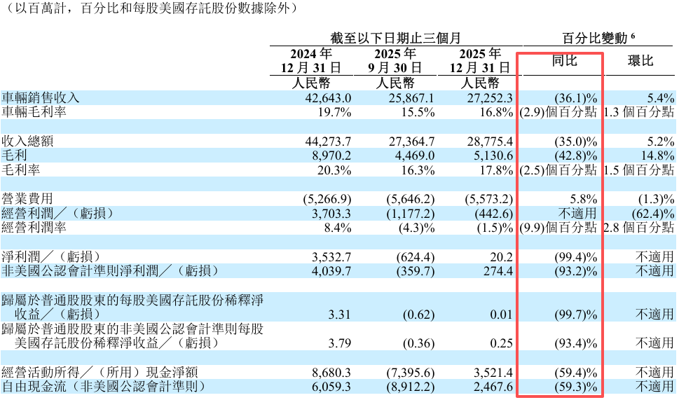 去年第四季度,理想汽车收入下滑35%,毛利润差点腰斩,只有51.3亿。