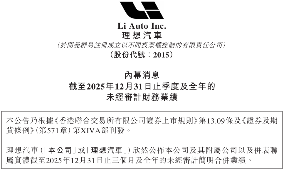 没错,刚刚理想汽车发布了去年财报。