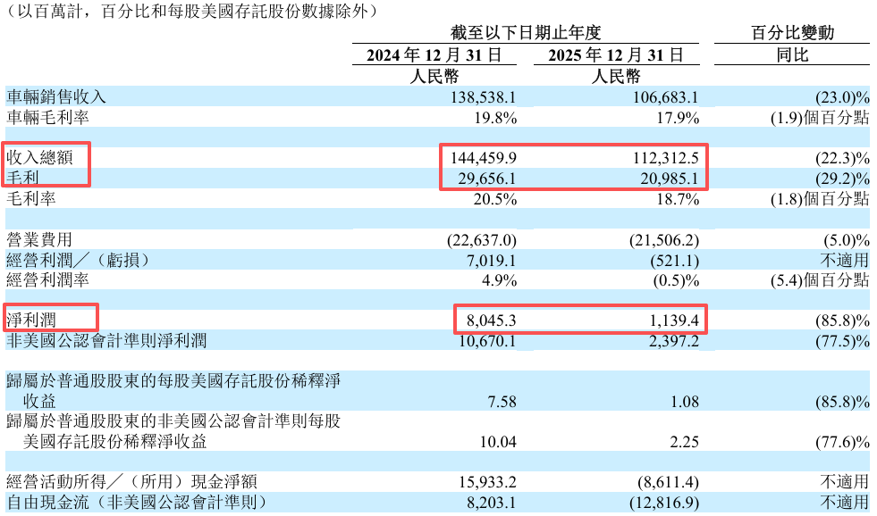 收入下滑22%,净利润下滑86%,全年净利润11.39亿。