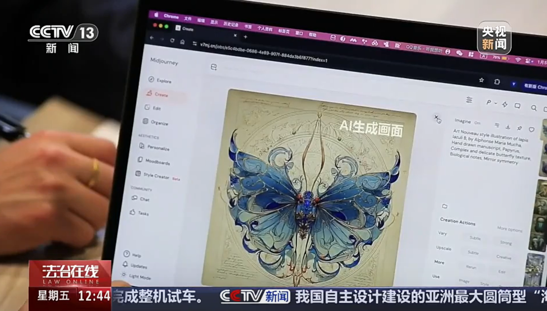 这些精美的图片,是上海一家文化公司利用人工智能大模型生成的。他们通过输入多组包含艺术风格、主体元素、材质细节等提示词,生成了这些图片,并发布在互联网平台上。