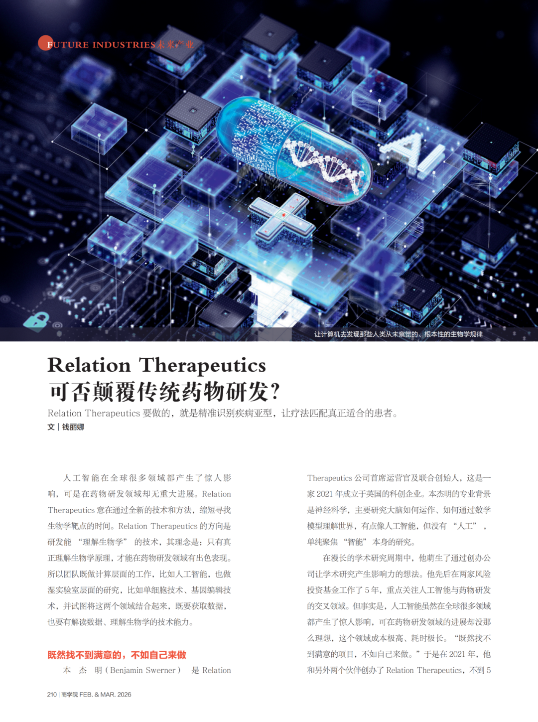人工智能在全球很多领域都产生了惊人影响,可是在药物研发领域却无重大进展。Relation Therapeutics 意在通过全新的技术和方法,缩短寻找生物学靶点的时间。它要做的,就是精准识别疾病亚型,让疗法匹配真正适合的患者。