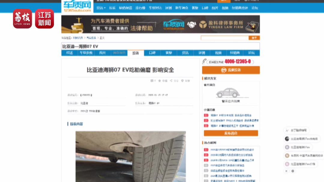 记者在网上查询发现,比亚迪海狮07EV的“吃胎”问题并非个例,已有多位车主反映类似情况,比亚迪厂家此前虽表示已将问题反馈至相关部门,但始终没有后续进展。