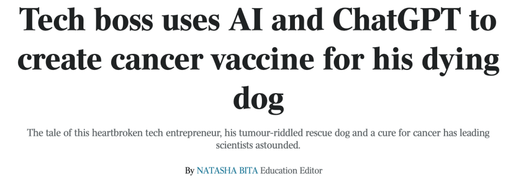 https://www.theaustralian.com.au/business/technology/tech-boss-uses-ai-and-chatgpt-to-create-cancer-vaccine-for-his-dying-dog/news-story/292a21bcbe93efa17810bfcfcdfadbf7