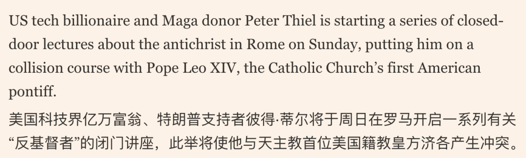 彼得·蒂尔在罗马以近乎决绝的姿态抨击天主教会的主张,他本人在美国政坛倾注巨资、一路保驾护航的核心政治盟友——现任副总统 JD·万斯(JD Vance),恰恰是一位极其虔诚的天主教徒。