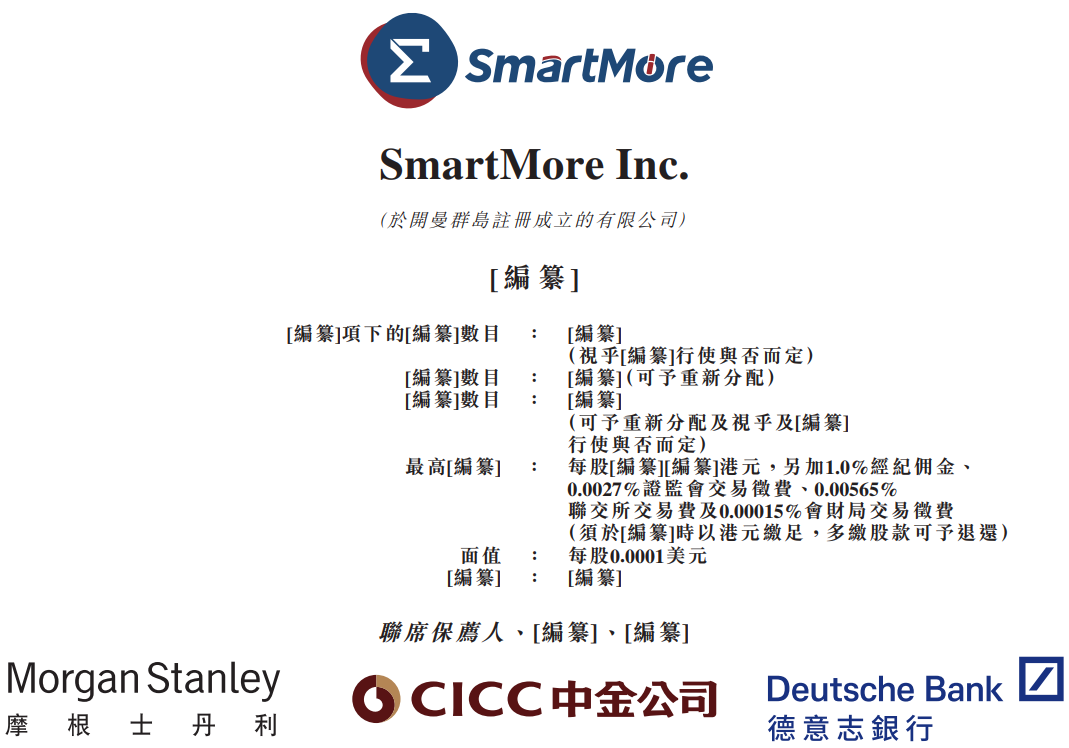 据港交所3月16日披露,SmartMore Inc.(思谋科技)递表港交所主板,摩根士丹利、中金公司、德意志银行为联席保荐人。