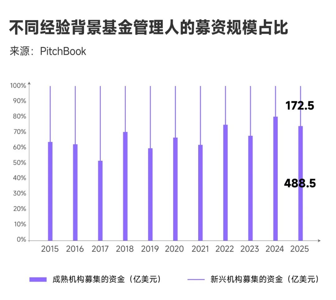 这一趋势造就了募资市场的两极分化:经验丰富的老牌机构仍然能够持续募资,而新兴基金管理人则面临更长的募资周期和更大的募资难度。