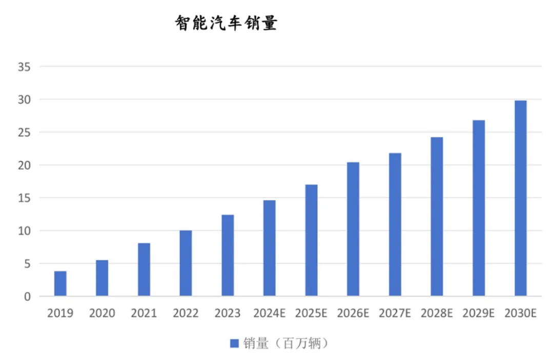 预计到2026年及2030年,中国智能汽车销量将分别达到2040万辆及2980万辆,智能汽车的渗透率分别达 81.2%及99.7%。2023年高阶自动驾驶渗透率达到12%,到2030年将进一步提高到80%以上。