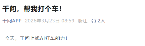 记者打开千问APP实测,用户只需说出目的地,千问将自动根据用户定位规划用车行程,并通过高德打车提供服务。