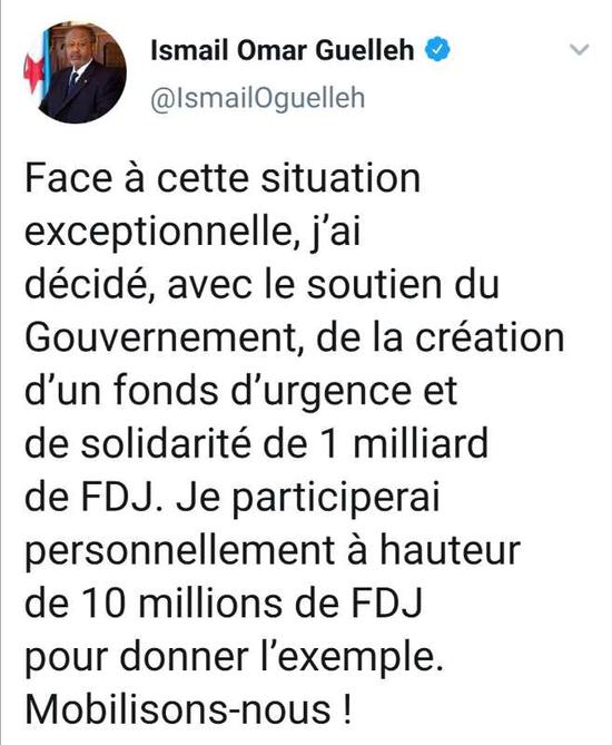 原标题:吉布提将成立10亿紧急基金抗击新冠肺炎疫情 总统本人提供1000万