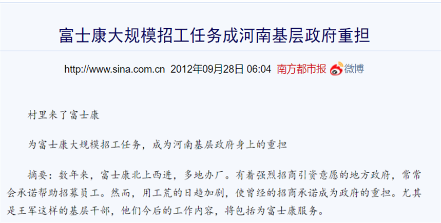 在这种情况下,河南政府帮助富士康去招工,有部分基层干部经过培训之后进入富士康打工,我看这没什么不对,挺好的,说明河南政府很务实。