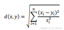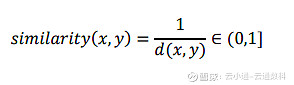 为该维度数据的方差,如果将方差的倒数看成权重,这个公式也可以称为加权的欧式距离。标准差越大的维度,在距离计算中的权重也越大。将距离转换为相似度,距离越小相似度越高: