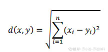 欧式距离,又称欧几里得距离,是最常见的度量距离的算法之一。欧式距离定义于欧几里得空间中,度量两点的直线距离,如点 = (1 , . . . , )和 = (1 , . . . , )之间的距离为:
