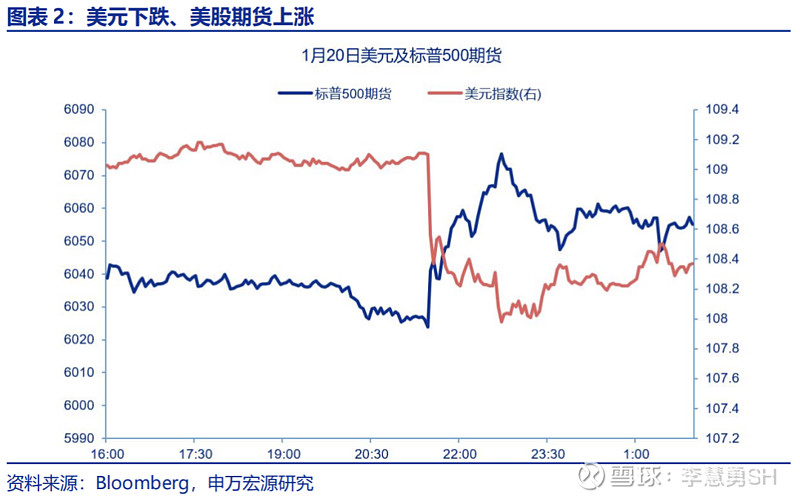美元下跌,美股期货上涨,黄金微涨。由于美国恰逢马丁路德金纪念日,美国股债均无交易。就职典礼前,华尔街日报公布消息,称“特朗普上任首日不会加征关税”,导致美元指数由109.4快贬1.3%至108;人民币汇率由7.34升至7.26;布油由80.8美元/桶快速下跌1.7%至79.4美元/桶;铜价由9154美元/吨快速上涨1.6%至9297美元/吨;金价由2748.7美元/盎司快速下跌0.8%至2726.6美元/盎司。就职典礼过程中,汇率、商品以震荡为主,仅比特币大幅异动,快速下跌4%。“宣布国家能源紧急状态,扩大钻探”的发言导致油价补跌约0.6%,随后震荡。“撤销汽车排放法规”对铜价无明显扰动,铜价继续上涨。关税政策未过多强调,也未涉及具体国家。随后美元小幅反弹,离岸人民币由7.26贬至7.28。加密货币未被提及,BTC为代表的加密货币继续快速回调。关于墨西哥湾、巴拿马运河等言论发表后,金价小幅上涨0.4%。