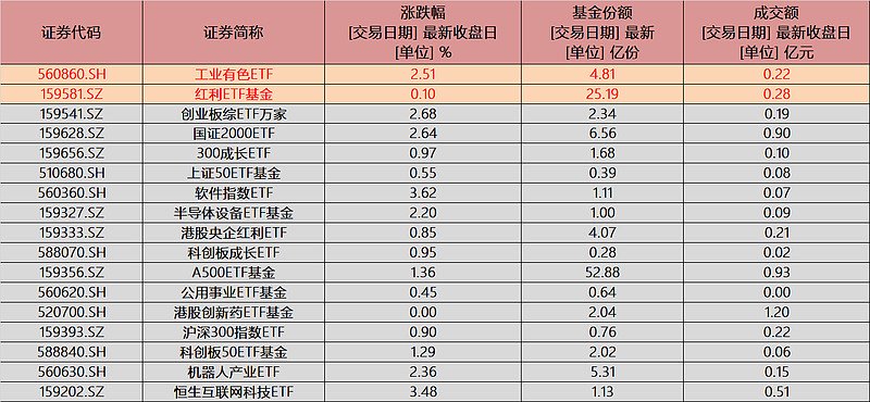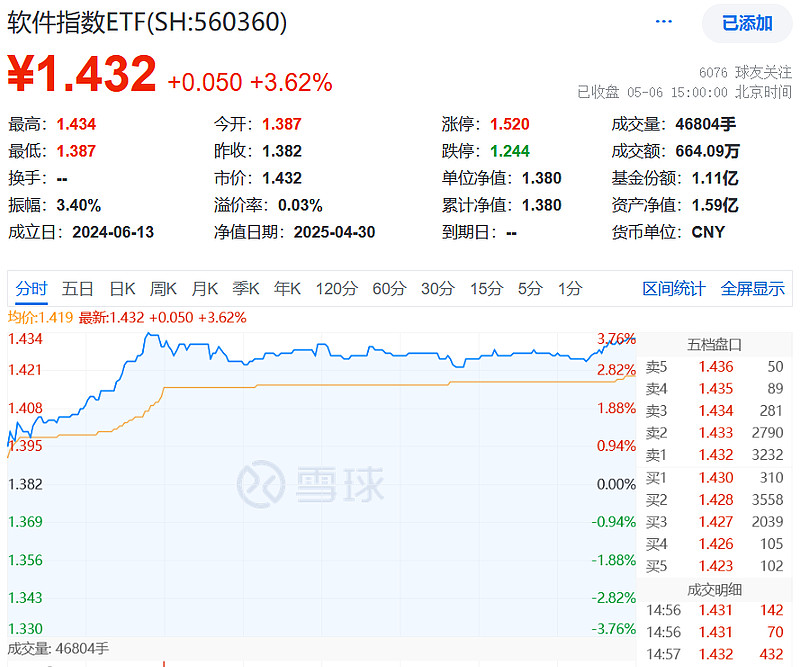 基金方面,$软件指数ETF(SH560360)$ 全体保持高位,收涨3.62%。