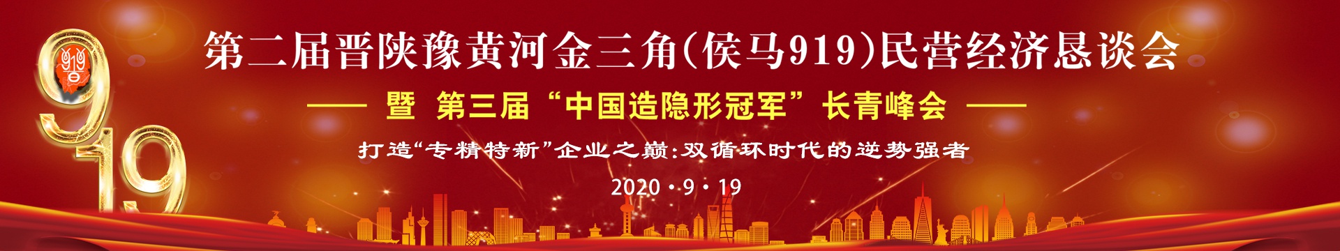 第二届晋陕豫黄河金三角民营经济恳谈会暨第三届“中国造隐形冠军”长青峰会于2020 年9月18日-20日举行。主题为:打造“专精特新”之巅:双循环时代的逆势强者。