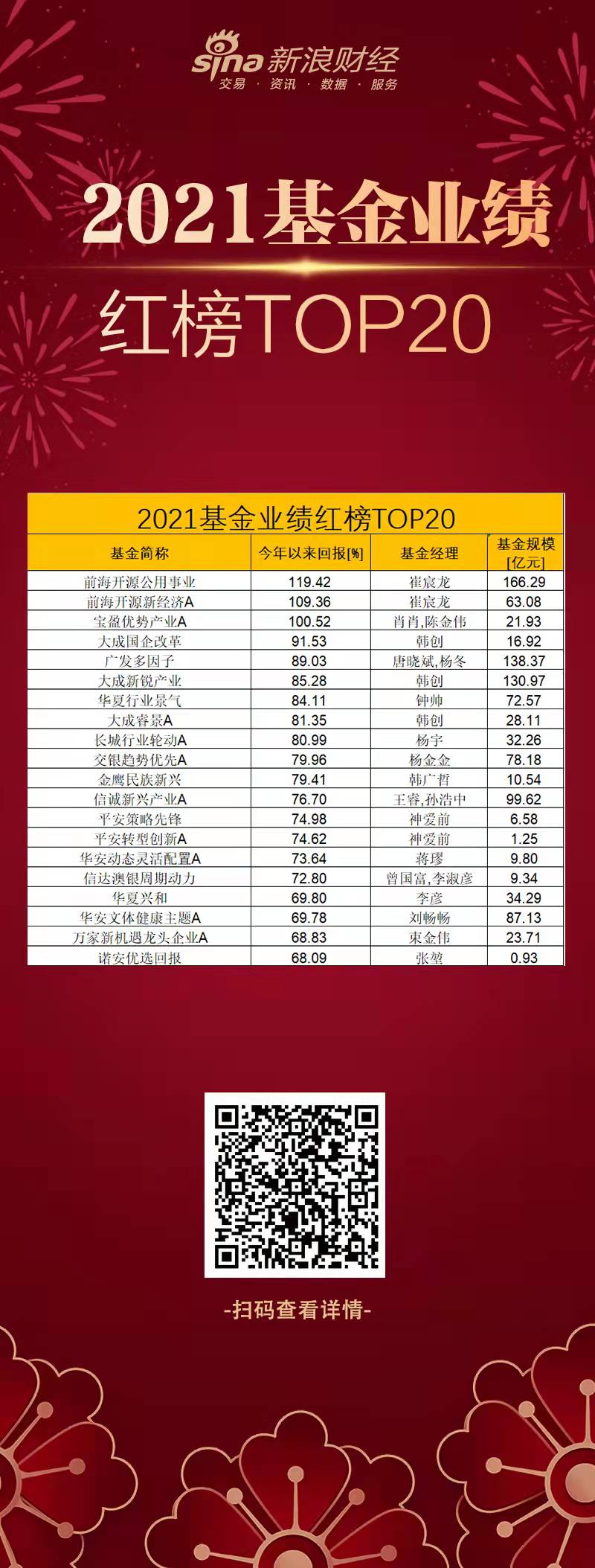 3只翻倍!2021基金业绩红榜TOP20出炉:崔宸龙、肖肖旗下产品收益超100%夺冠季亚军