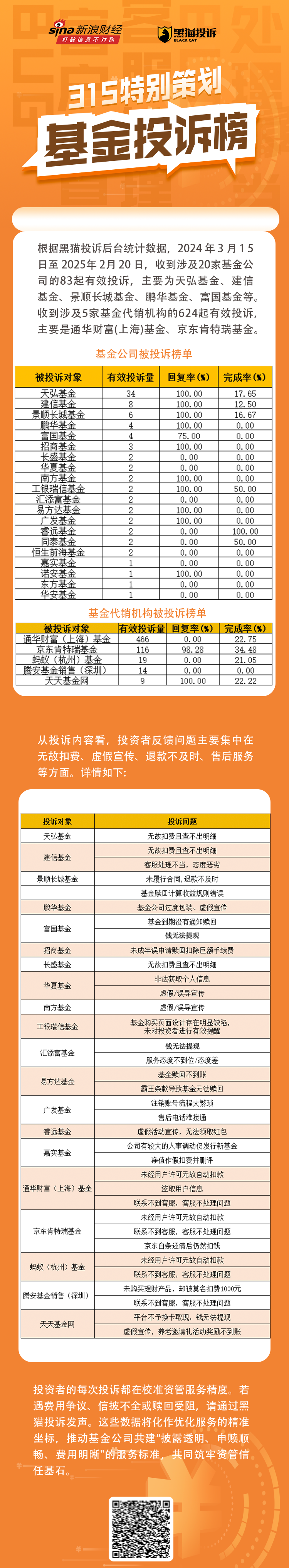 315在行动 | 基金315:83起有效投诉直指天弘景顺等20家基金公司,京东肯特瑞等5家代销机构上榜