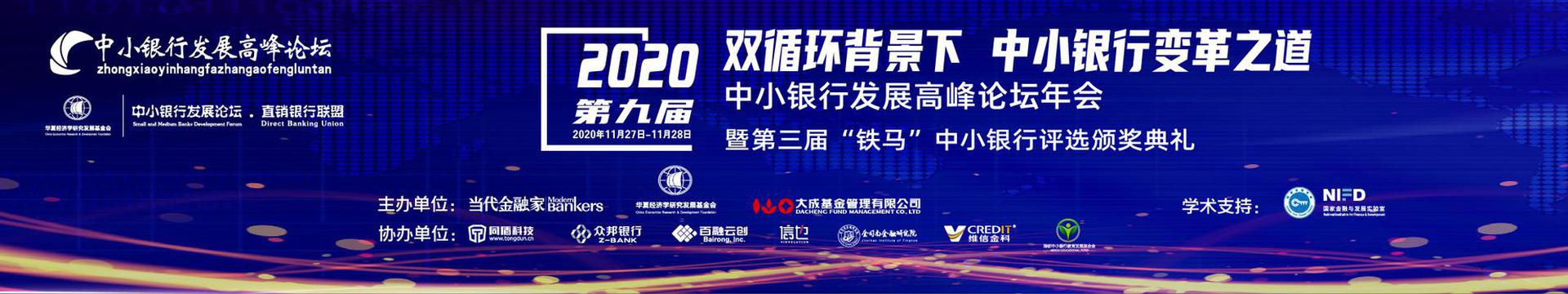 “2020(第九届)中小银行发展高峰论坛”于2020年11月27日-11月28日在深圳举办。本届论坛主题为“双循环背景下中小银行变革之道”。