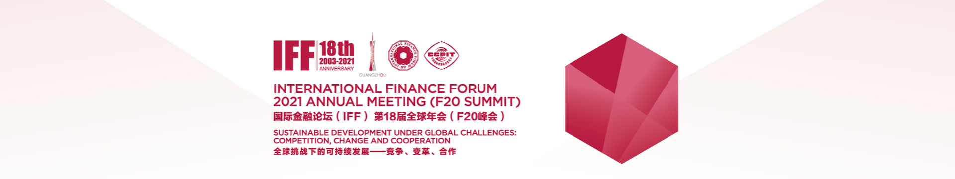 中国贸促会、广州市人民政府、国际金融论坛(IFF)于2021年12月3日至5日在广州市共同主办国际金融论坛(IFF)第18届全球年会(F20峰会)。主题为“全球挑战下的可持续发展——竞争、变革、合作”。