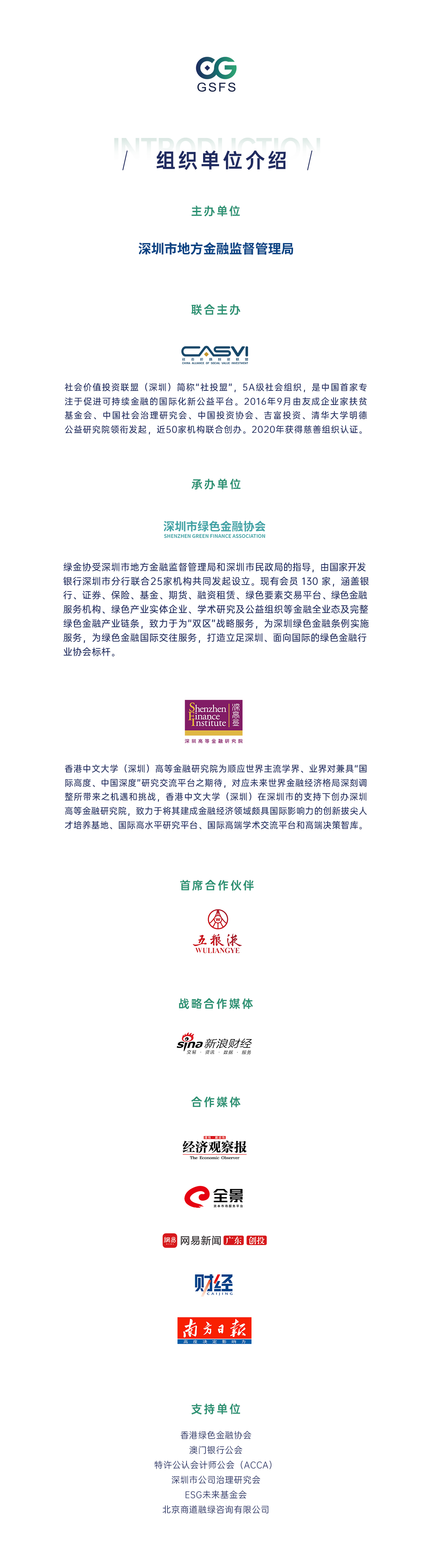 为助力深圳建设可持续金融中心,共建可持续金融生态,深圳市地方金融监督管理局将于11月16日在深圳举办首届大湾区绿色和可持续峰会,社会价值投资联盟为本届峰会的联合主办单位,深圳市绿色金融协会和香港中文大学(深圳)高等金融研究院为本届峰会的承办单位,四川省宜宾五粮液集团有限公司为本届峰会首席合作伙伴,新浪财经为本届峰会战略合作媒体。 本届峰会以“绿色助力大湾区建设,金融创造可持续未来”为主题,广泛邀请国内外可持续金融领域政府代表、行业领袖、企业高管、专家学者出席,聚焦大湾区绿色金融新发展、影响力投资在中国的前沿实践以及ESG投资与信息披露新征程、海外可持续金融要素赋能大湾区创新发展等可持续金融议题,共探全球可持续发展未来。