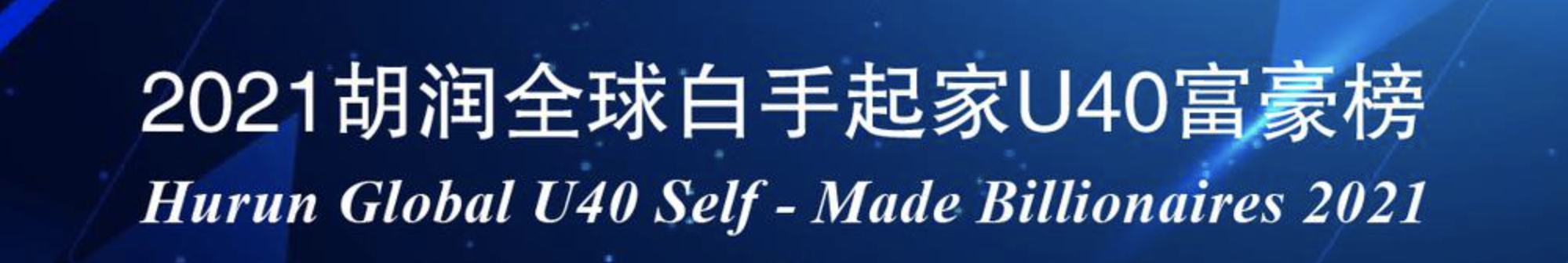 2021胡润全球白手起家40岁以下富豪榜:前六名四位来自中国