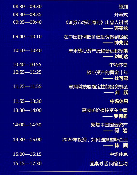 12月22日红周刊主办“2020做多中国,聚焦核心资产”投资峰会在北京举行。 私募大佬东方马拉松投资董事长钟兆民、明达资产董事长刘明达、林园投资董事长林园等发言。