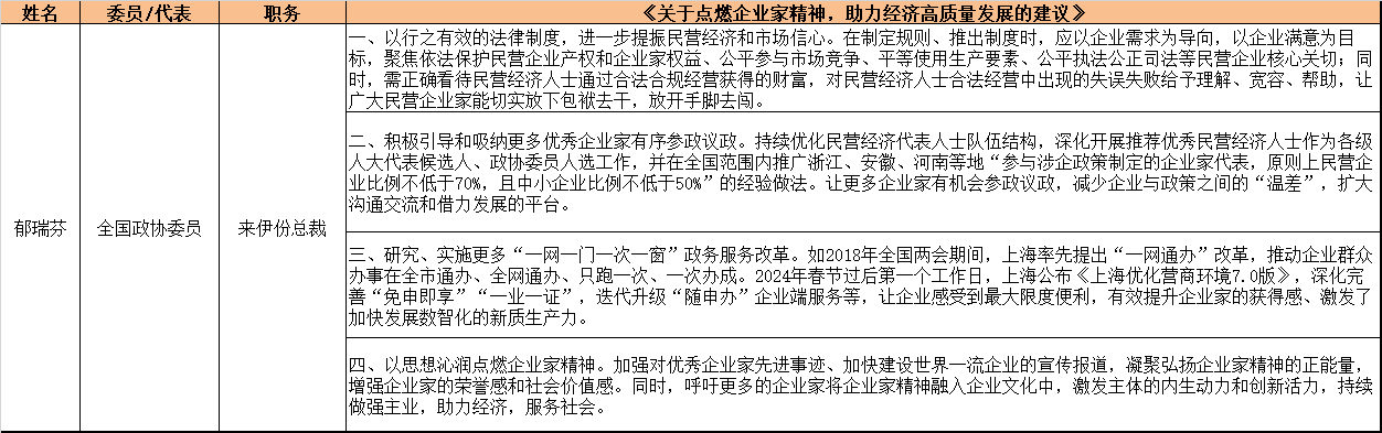 专题|来伊份总裁郁瑞芬2024两会提案:点燃企业家精神 助力经济高质量发展