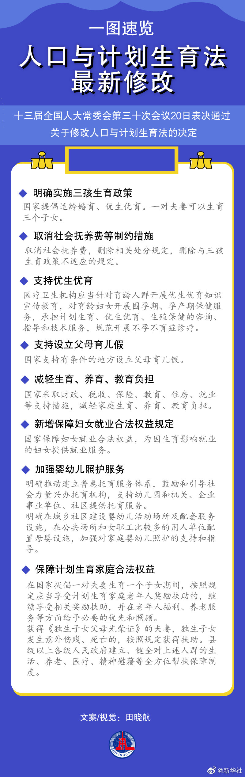 人口与计划生育法修正草案将提请审议 草案围绕三孩生育政策实施等进行了修改