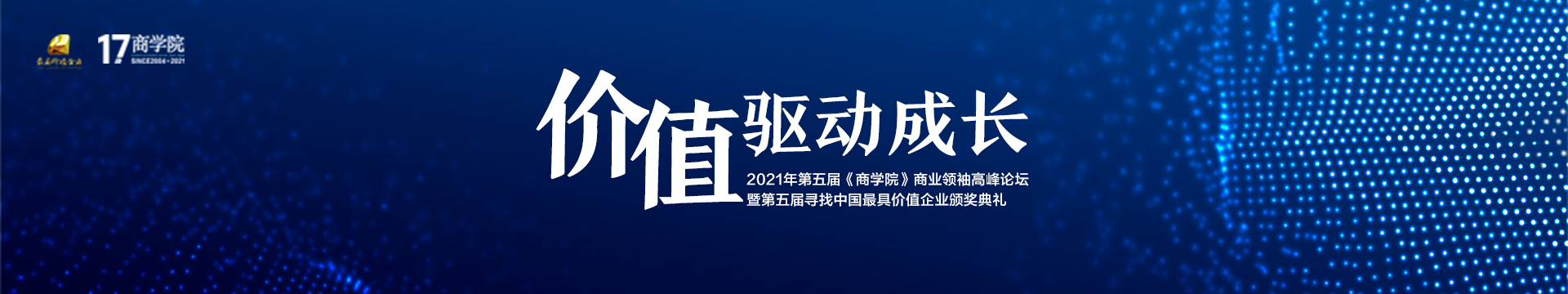 2021年第五届《商学院》商业领袖高峰论坛暨第五届寻找中国最具价值企业颁奖典礼9月15日在北京举行。主题为“价值驱动成长”。