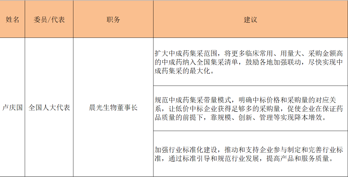 专题|晨光生物董事长卢庆国两会议案:完善中成药集中带量采购机制