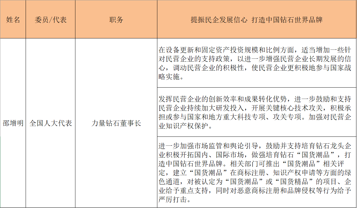 专题|力量钻石董事长邵增明两会议案:提振民企发展信心 打造中国钻石世界品牌
