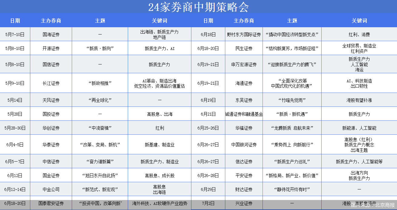 24家券商中期策略会接踵而来!AI、出海、高股息成关键词