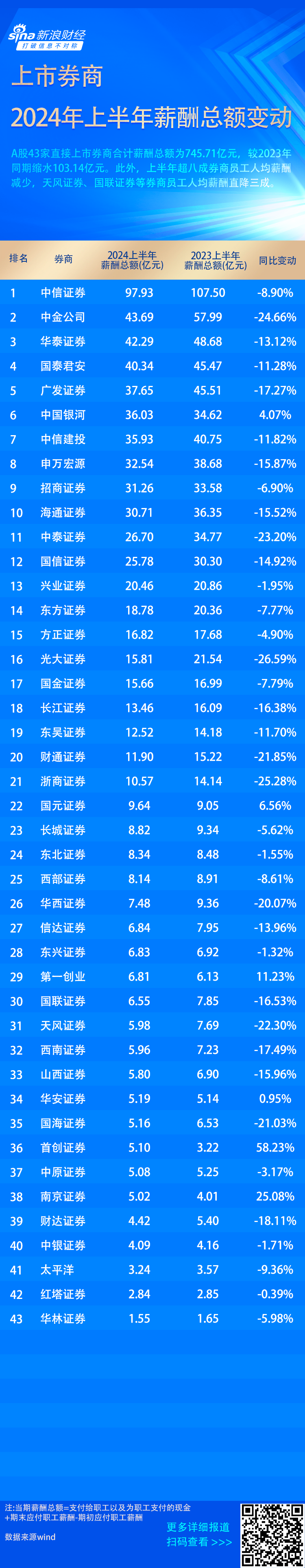 43家上市券商薪酬缩水百亿 超八成机构人均薪酬下滑