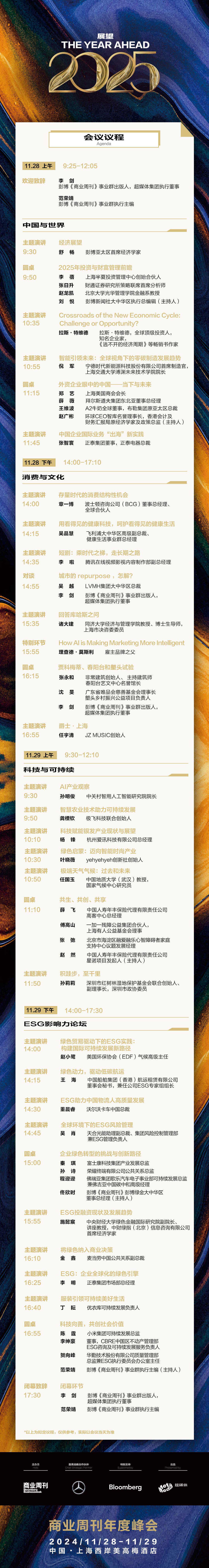2024年11月28日到29日,由《商业周刊》主办的“The Year Ahead 2025展望峰会”在上海举办。