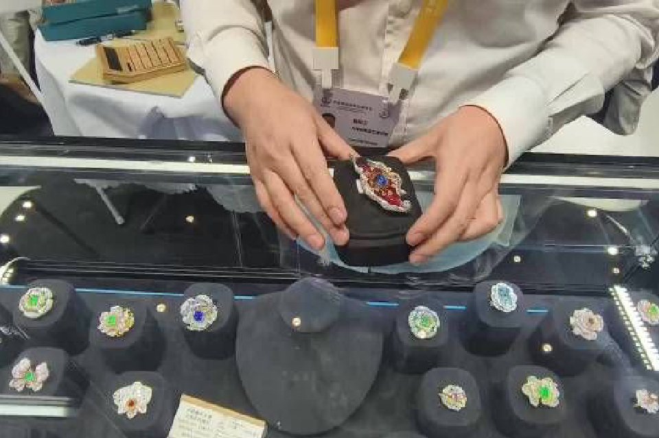 第五届消博会2号展馆珠宝亮眼 参展商展示55万蓝宝石胸针