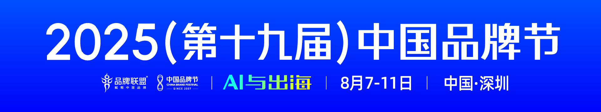 第十九届中国品牌节将于8月7日-11日在深圳举办,活动以“AI与出海”为主题,同期还将举行永敢者大会、强脑公益晚会、百屹会文艺盛典等系列活动。
