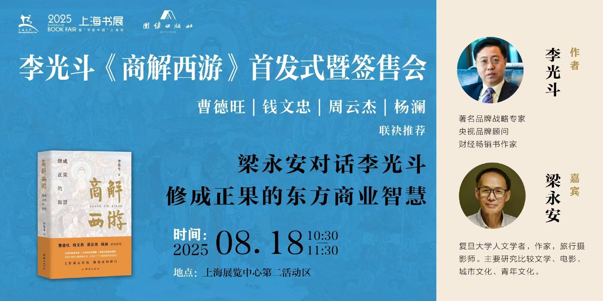 李光斗《商解西游》首发式暨签售会于8月18日在上海举行。著名品牌战略专家李光斗与复旦大学人文学者梁永安交流。