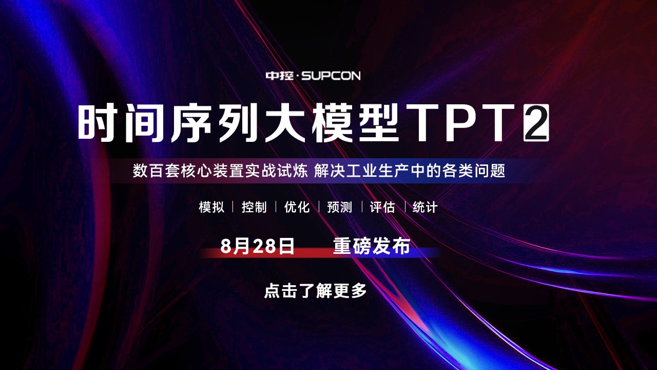 时序聚能·慧引未来——2025中控技术全球新品发布暨工业AI创新发展大会将于8月28日在中国杭州隆重开幕,面向全球重磅发布时间序列大模型TPT2(Time-series Pre-trained Transformer)。大会汇聚国内外知名企业、高校、协会、学会等各界人士,共探工业AI发展趋势、共绘产业协同发展蓝图。