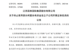 江苏国泰:终止使用部分闲置自有资金15亿元设立子公司开展证券投资