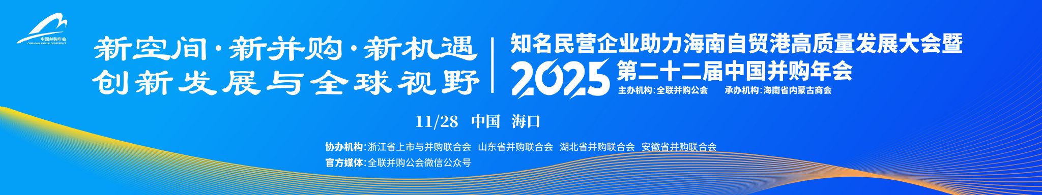 知名民营企业助力海南自贸港高质量发展大会暨2025(第二十二届)中国并购年会于2025年11月27-28日在海南举行,本届年会主题为“新空间·新并购·新机遇—创新发展与全球视野”。