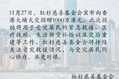 11月26日下午,香港新界大埔屋邨宏福苑突发五级火灾,社会各界迅速支援。11月27日,霍启刚称家族捐赠3000万港元支援大埔宏福苑居民,京东、百度、红杉、滴滴等火速驰援,阿里巴巴集团、蚂蚁集团、安踏集团、吉利控股、温氏股份等企业也纷纷伸出援手。